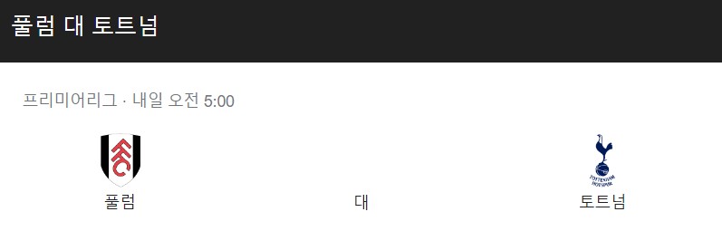 한국 시간 기준 24(화) 오전 5시에 크레이븐 코티지에서 풀럼 대 토트넘 홋스퍼의 경기가 진행됩니다.